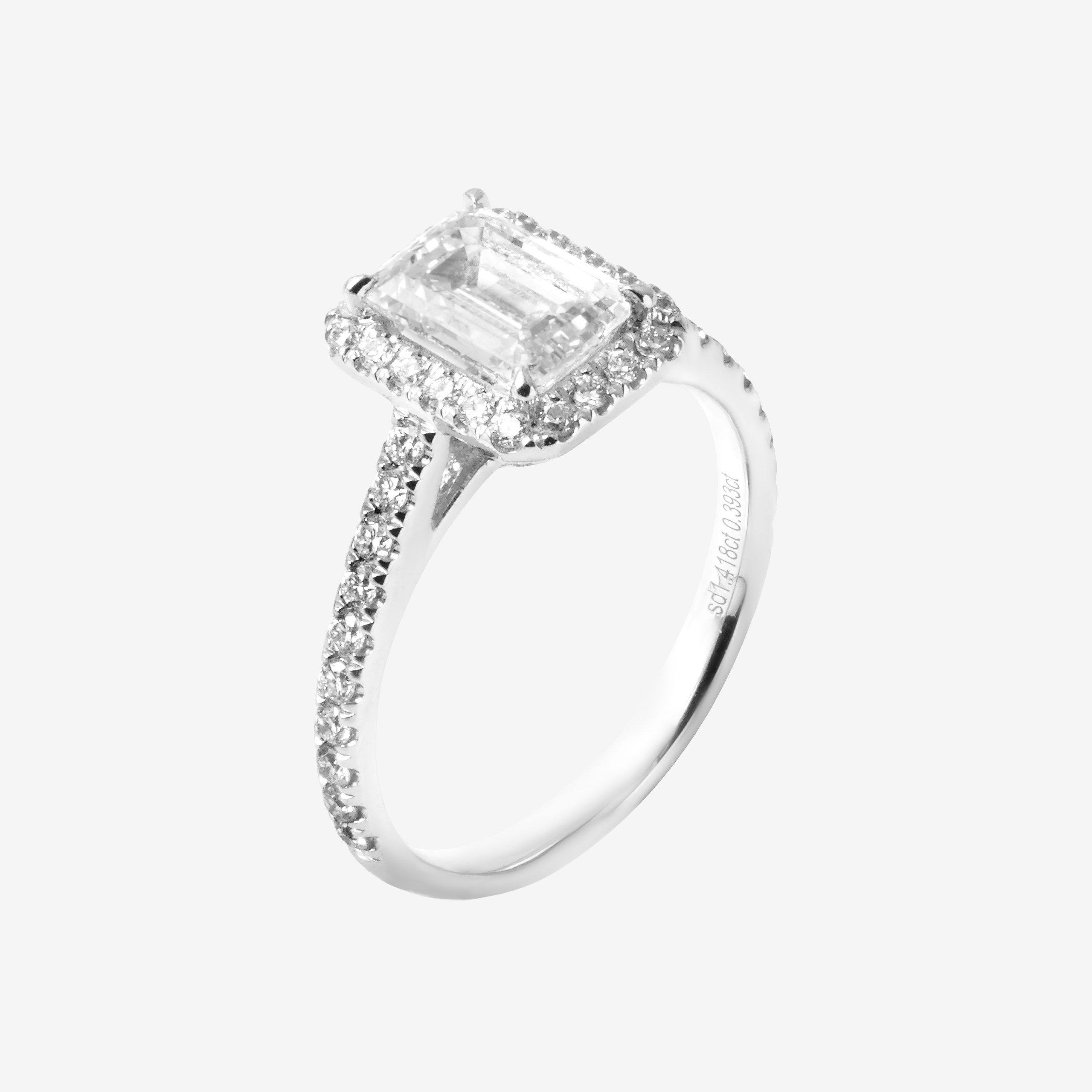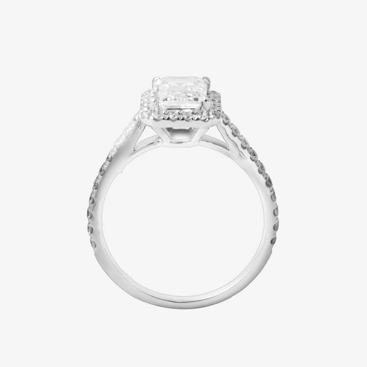 The Love Cube captures the essence of strength and precision in love. Featuring an elegant emerald-cut diamond at the center, this ring is encircled by a delicate pavé halo, adding brilliance to its timeless beauty. The clean lines and geometric design reflect the unwavering, enduring bond between two hearts, making this piece a symbol of love that transcends time.
